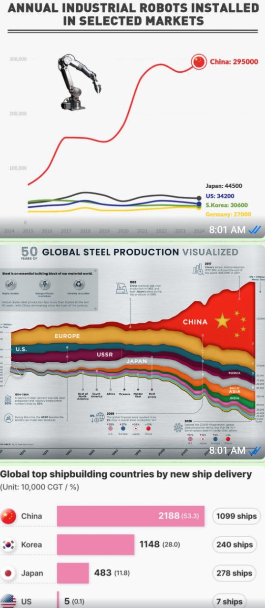As we can observe the US lagged behind in terms of robotics, steel production, and ship building many times over compared to China. Those select industries indicate how powerful the advanced Chinese industrial economy is; and we can see that the US is quite weak in terms of industrial production right now. The US clearly was winning in tech, financial services and specific ad-hoc fields, but the industrial economy, power generation, mining and agriculture lagged… They are what I call the “real” economy.